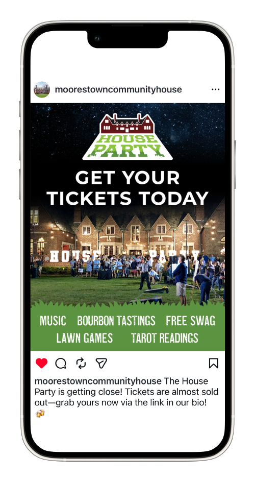For Community House of Moorestown, we created a custom visual identity for House Party, an annual fundraising event hosted at their historic venue. The goal was to strike a balance between fun and inviting, while respecting the character and legacy of the Community House.