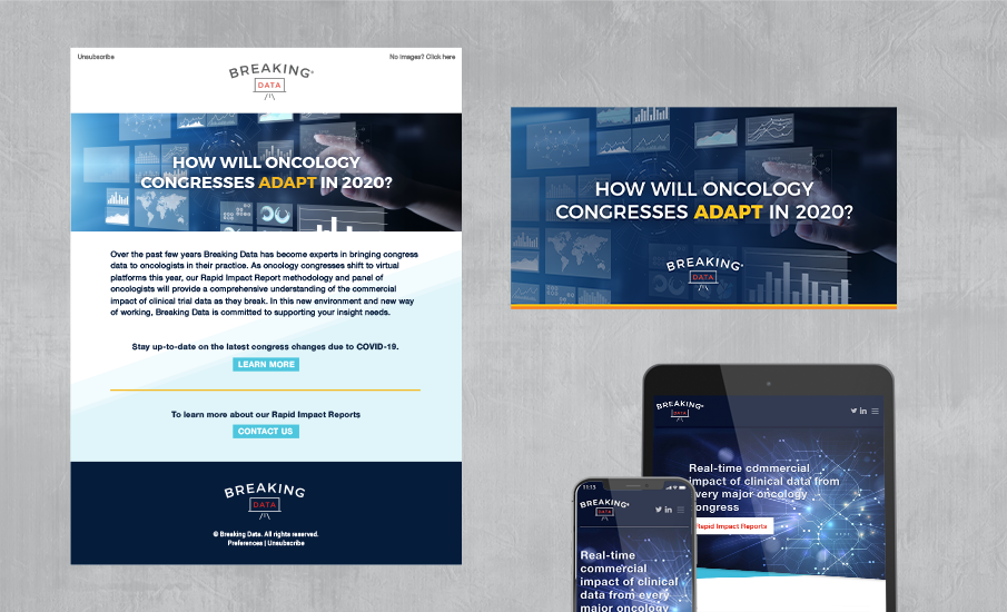 We are supporting Breaking Data by updating their site with COVID-19-specific content, creating social graphics to go out across LinkedIn (both through paid and organic marketing), and designing email marketing campaigns to reach new and current clients.