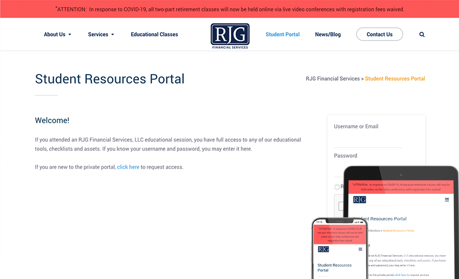 In addition, we programmed and launched a secure web portal for retirement planning students to access course documents and assets upon completion of the course.