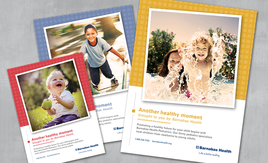 This print ad campaign was designed to create general awareness about Barnabas Health Pediatrics. An Instagram-style design and layout is used to evoke feelings of happiness and health capturing brief moments from a child’s life. More specifically, these ads are designed to promote the concept that a healthy child’s future begins with Barnabas Health Pediatrics.