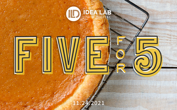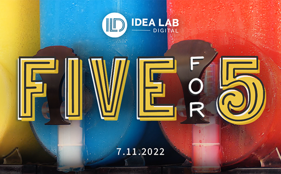 We know your time is precious, so we’ve created Five for 5, a brief newsletter, which is published monthly, emailed and shared across social platforms at exactly 5 o’clock. Each edition features five digital potions prepared here in the lab. It’s five o’clock somewhere…